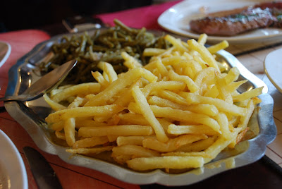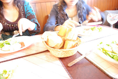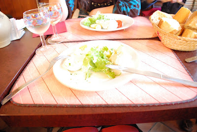 首先上来的是面包块,皮非常硬、脆,用牙齿切碎是要费很大力气的。接着就是蔬菜沙拉……
